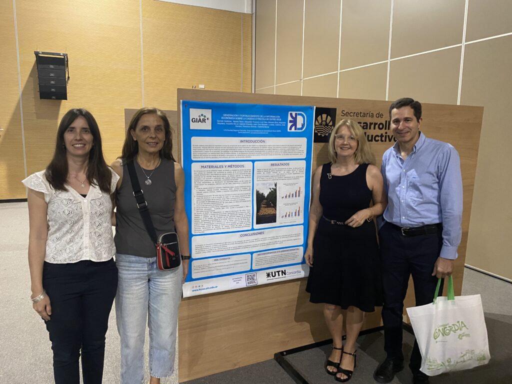 Durante la jornada, los docentes e investigadores Mónica Inchauspe y Germán Scattone representaron a la UTN Concordia, presentando los avances del proyecto PID 10070: “Herramientas de gestión para pequeños empacadores citrícolas del noreste de Entre Ríos”, iniciativa que busca fortalecer la competitividad, sostenibilidad y capacidad de innovación de las pequeñas y medianas empresas citrícolas de la región.