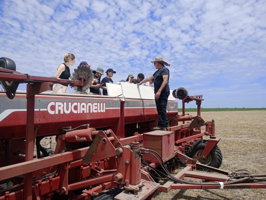 Se observó una sembradora en funcionamiento y se dialogó con el maquinista sobre partes y componentes de la máquina, calibración, cuidados operativos y fallas más habituales.