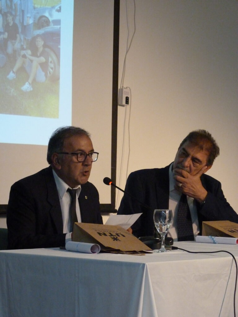 El Ing. José Jorge Penco, Decano de la Universidad Tecnológica Nacional Facultad Regional Concordia, destacó especialmente a quienes sentaron las bases de la institución: “Los pioneros, como los llamamos con profundo respeto, fueron los creadores de todo lo que hoy vemos. Con sacrificio, trabajo y dedicación plantaron la piedra fundamental para que esta Facultad exista”. En su repaso histórico, recordó la incorporación de nuevas carreras como la Licenciatura en Administración Rural, el proceso de regionalización logrado en 2005 y los desafíos edilicios que se superaron a lo largo del tiempo: “Se daba clase en aulas precarias, pero así y todo se avanzó. Paso a paso, muy despacio, pero con mucha voluntad, la Facultad fue creciendo”. Penco también llamó a las y los estudiantes a valorar lo alcanzado y expresó su agradecimiento al personal docente y no docente: “Hoy tenemos una Facultad que se ganó su espacio en la ciudad; UTN Concordia es parte viva de la comunidad”.