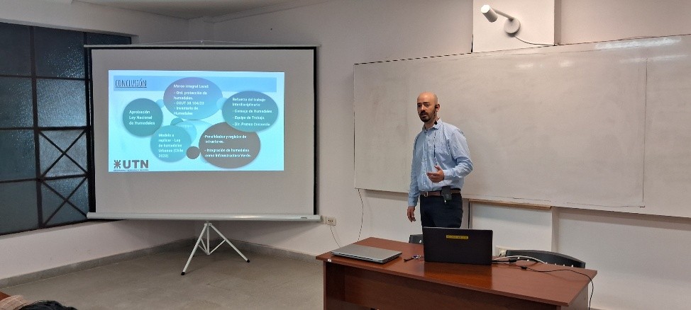 El trabajo titulado: “Protección de los humedales en el ejido de la ciudad de Concordia” fue orientado por el Dr. Eduardo Etchepare (UTN Concordia). El jurado estuvo integrado por Mg. Valeria Gonzalez Wetzel (UTN Concordia), Dra. Pamela Zamboni (UADER FCyT), y Dra. María Eugenia Garat (UTN Concordia). Asistieron a la defensa alumnos de la Especialización y la coordinadora del Área Posgrado, Ing. Andrea Pereyra.